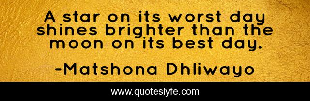 "Matshona Dhliwayo Quotes." Quoteslyfe.com, 2025. Sun. 07 Dec. 2025. <https://www.quoteslyfe.com/quote/A-star-on-its-worst-day-shines-83203>.