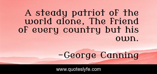 This page presents the quote "A steady patriot of the world alone, The friend of every country but his own.". Author of this quote is George Canning. This quote is about alone, world, friend,.