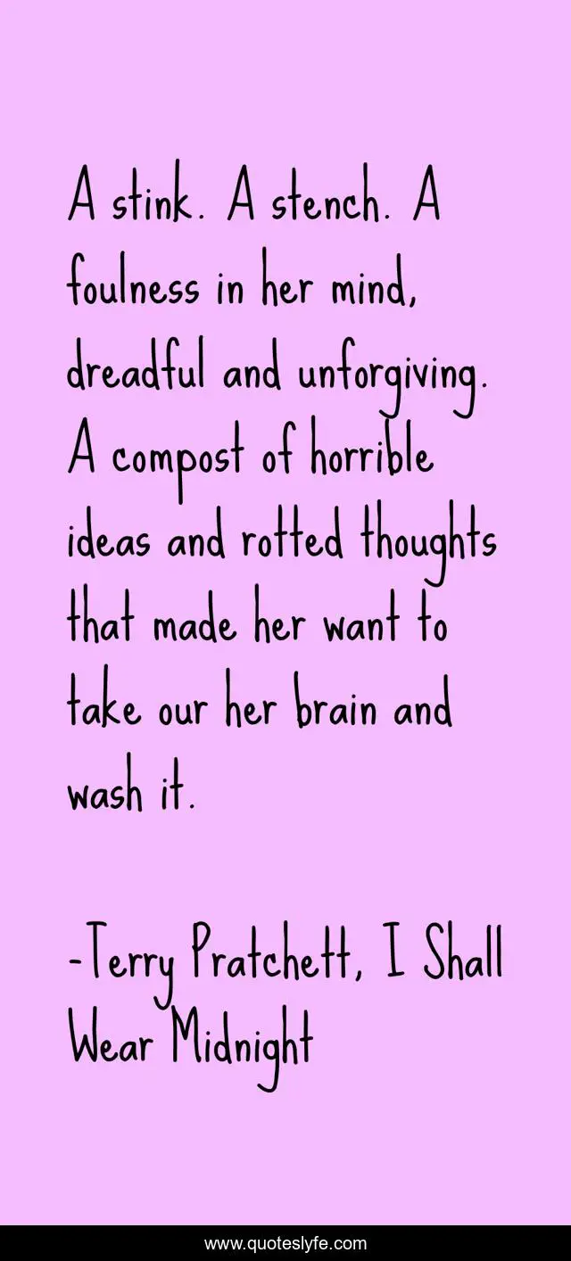 "Terry Pratchett, I Shall Wear Midnight Quotes." Quoteslyfe.com, 2025. Mon. 08 Dec. 2025. <https://www.quoteslyfe.com/quote/A-stink-A-stench-A-foulness-in-45400>.