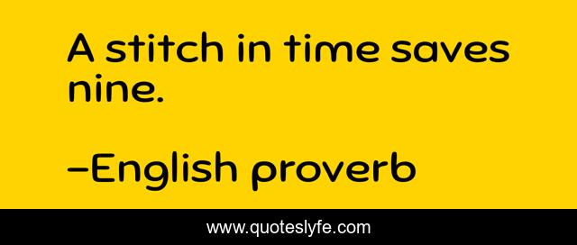 This page presents the quote "A stitch in time saves nine.". Author of this quote is English proverb. .