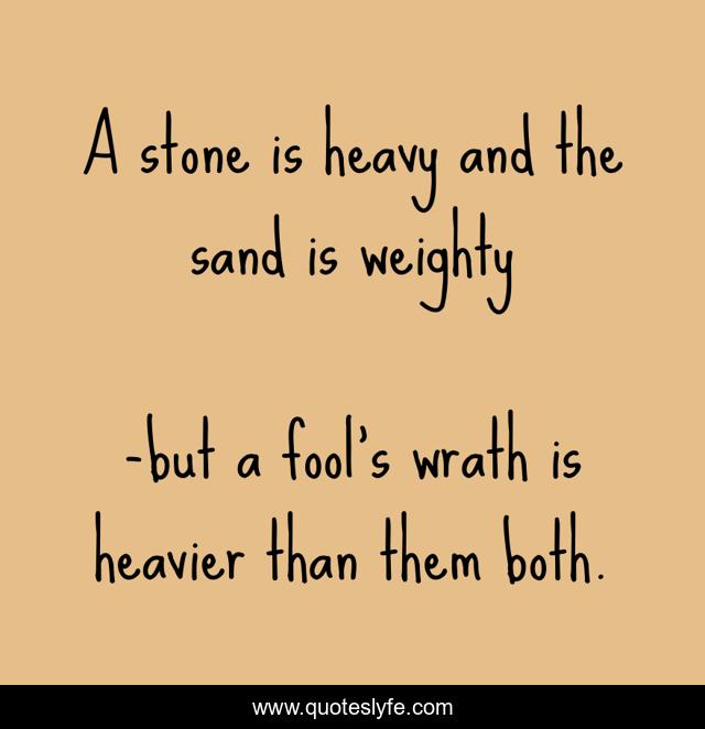 "but a fool's wrath is heavier than them both. Quotes." Quoteslyfe.com, 2025. Fri. 05 Dec. 2025. <https://www.quoteslyfe.com/quote/A-stone-is-heavy-and-the-sand-8021>.