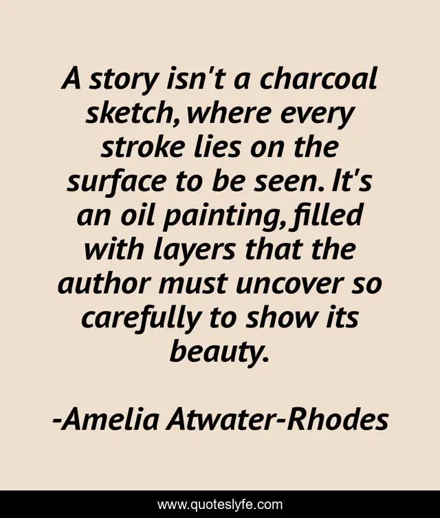 This page presents the quote "A story isn't a charcoal sketch, where every stroke lies on the surface to be seen. It's an oil painting, filled with layers that the author must uncover so carefully to show its beauty.". Author of this quote is Amelia Atwater-Rhodes. .