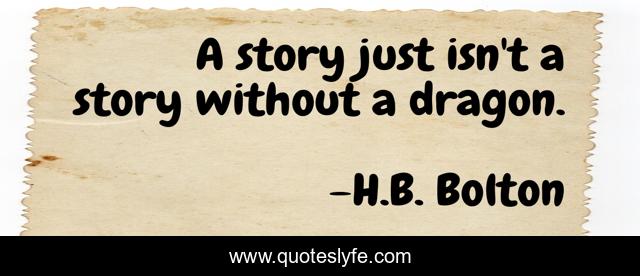 This page presents the quote "A story just isn't a story without a dragon.". Author of this quote is H.B. Bolton. This quote is about fantasy, story, books, adventure, dragons,.