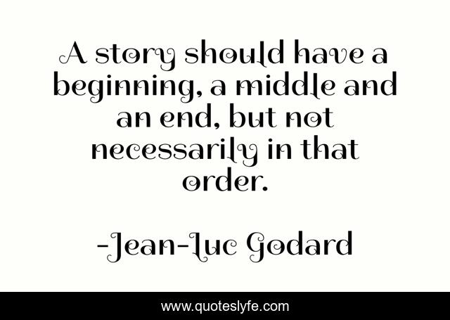 This page presents the quote "A story should have a beginning, a middle and an end, but not necessarily in that order.". Author of this quote is Jean-Luc Godard. This quote is about beginning, story, end,.