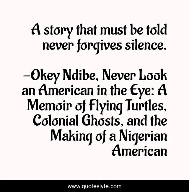 "Okey Ndibe, Never Look an American in the Eye: A Memoir of Flying Turtles, Colonial Ghosts, and the Making of a Nigerian American Quotes." Quoteslyfe.com, 2025. Fri. 05 Dec. 2025. <https://www.quoteslyfe.com/quote/A-story-that-must-be-told-never-199994>.