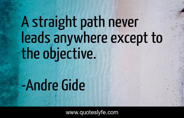 This page presents the quote "A straight path never leads anywhere except to the objective.". Author of this quote is Andre Gide. .