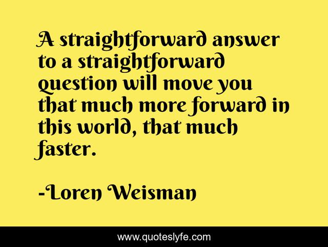 This page presents the quote "A straightforward answer to a straightforward question will move you that much more forward in this world, that much faster.". Author of this quote is Loren Weisman. This quote is about straightforward, communication, answers, questions, straightforwardness, tips, honor,.