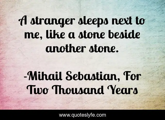 "Mihail Sebastian, For Two Thousand Years Quotes." Quoteslyfe.com, 2025. Sat. 06 Dec. 2025. <https://www.quoteslyfe.com/quote/A-stranger-sleeps-next-to-me-like-199042>.