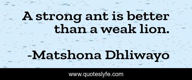 "Matshona Dhliwayo Quotes." Quoteslyfe.com, 2025. Fri. 05 Dec. 2025. <https://www.quoteslyfe.com/quote/A-strong-ant-is-better-than-a-98338>.