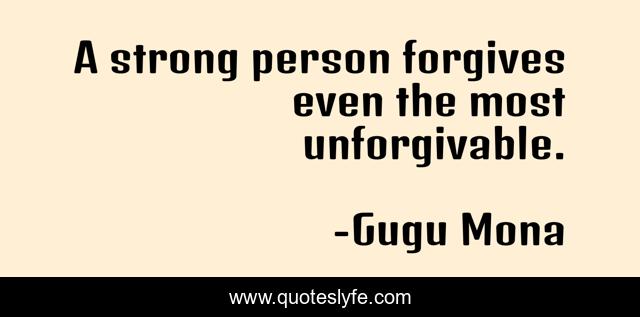 This page presents the quote "A strong person forgives even the most unforgivable.". Author of this quote is Gugu Mona. This quote is about forgiveness, strong, unforgivable,.