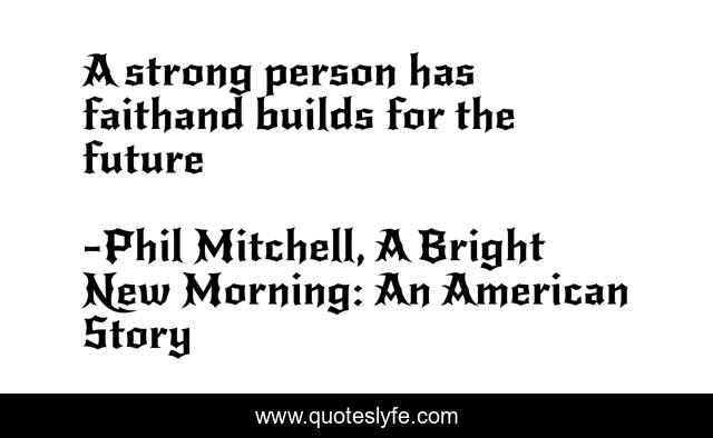 "Phil Mitchell, A Bright New Morning: An American Story Quotes." Quoteslyfe.com, 2025. Fri. 05 Dec. 2025. <https://www.quoteslyfe.com/quote/A-strong-person-has-faithand-builds-for-57607>.