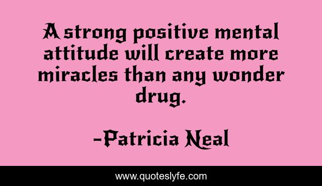 This page presents the quote "A strong positive mental attitude will create more miracles than any wonder drug.". Author of this quote is Patricia Neal. This quote is about positive, confidence, strong, wonder,.