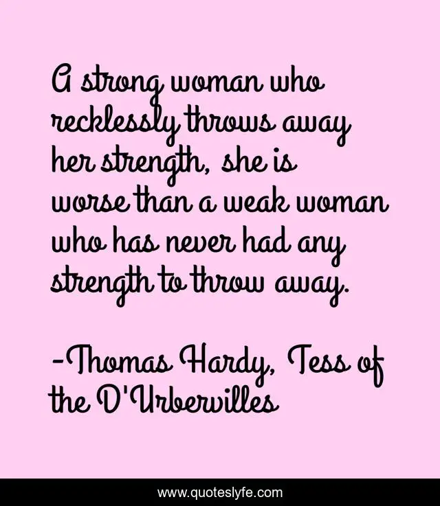 "Thomas Hardy, Tess of the D'Urbervilles Quotes." Quoteslyfe.com, 2025. Tue. 09 Dec. 2025. <https://www.quoteslyfe.com/quote/A-strong-woman-who-recklessly-throws-away-104045>.