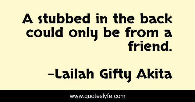 This page presents the quote "A stubbed in the back could only be from a friend.". Author of this quote is Lailah Gifty Akita. This quote is about broken-heart, inspiring, friend, wise-words, stubbed,.