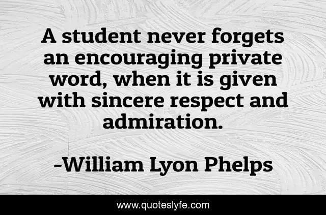 This page presents the quote "A student never forgets an encouraging private word, when it is given with sincere respect and admiration.". Author of this quote is William Lyon Phelps. This quote is about admiration, student,.