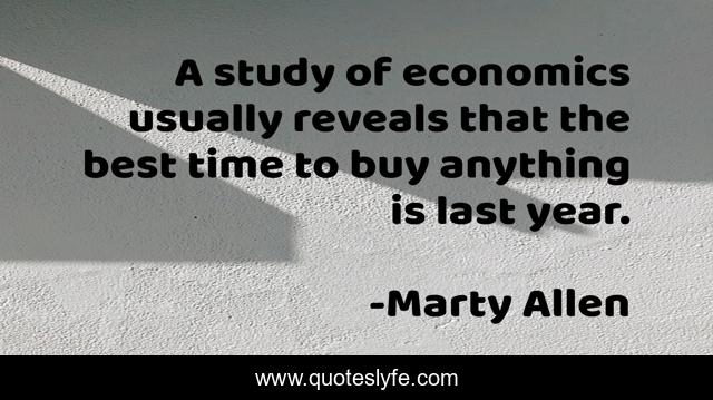 This page presents the quote "A study of economics usually reveals that the best time to buy anything is last year.". Author of this quote is Marty Allen. This quote is about selling, buying,.