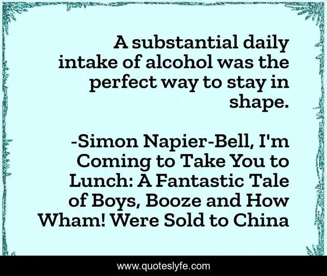 "Simon Napier-Bell, I'm Coming to Take You to Lunch: A Fantastic Tale of Boys, Booze and How Wham! Were Sold to China Quotes." Quoteslyfe.com, 2025. Fri. 05 Dec. 2025. <https://www.quoteslyfe.com/quote/A-substantial-daily-intake-of-alcohol-was-246982>.