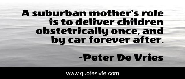This page presents the quote "A suburban mother's role is to deliver children obstetrically once, and by car forever after.". Author of this quote is Peter De Vries. This quote is about forever, children, mother,.