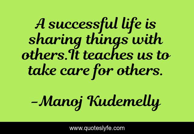 This page presents the quote "A successful life is sharing things with others.It teaches us to take care for others.". Author of this quote is Manoj Kudemelly. .