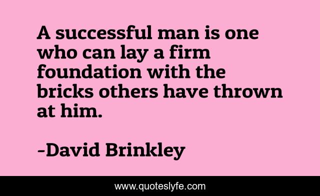 This page presents the quote "A successful man is one who can lay a firm foundation with the bricks others have thrown at him.". Author of this quote is David Brinkley. This quote is about successful, foundation, man,.