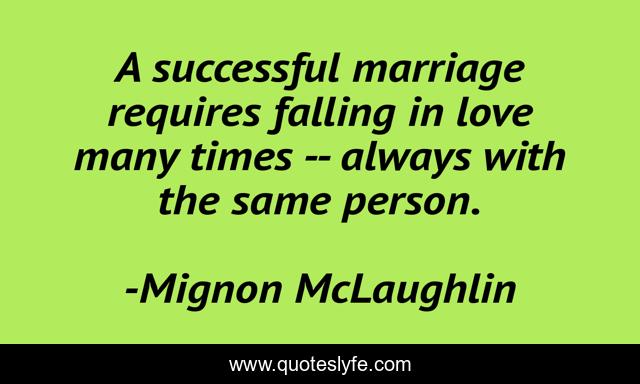 "Mignon McLaughlin Quotes." Quoteslyfe.com, 2025. Sun. 07 Dec. 2025. <https://www.quoteslyfe.com/quote/A-successful-marriage-requires-falling-in-love-4727>.