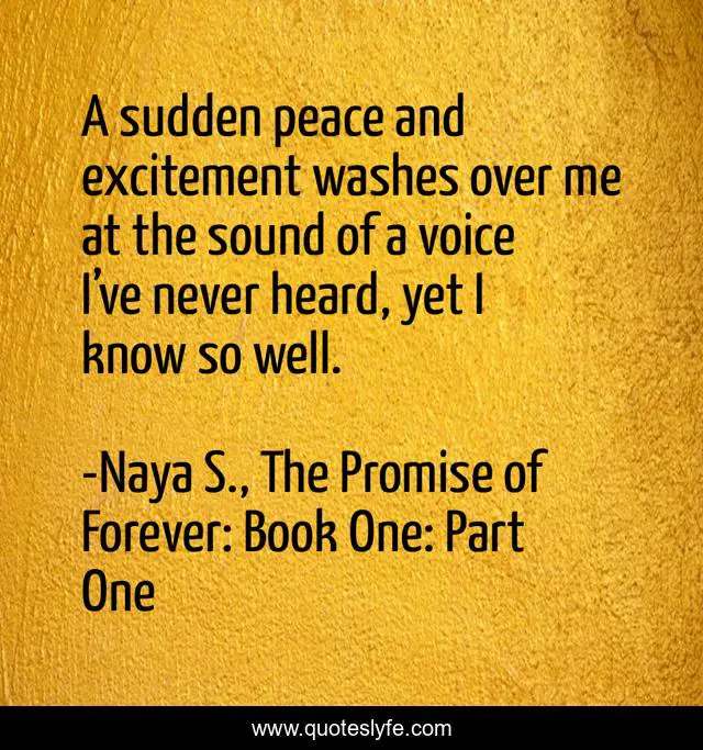 "Naya S., The Promise of Forever: Book One: Part One Quotes." Quoteslyfe.com, 2025. Sat. 06 Dec. 2025. <https://www.quoteslyfe.com/quote/A-sudden-peace-and-excitement-washes-over-248502>.