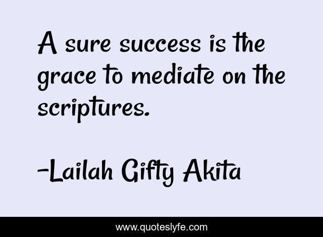 This page presents the quote "A sure success is the grace to mediate on the scriptures.". Author of this quote is Lailah Gifty Akita. This quote is about christian, scriptures, success, mediation, inspirational, self-help, enthusiasm,.