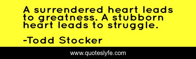 This page presents the quote "A surrendered heart leads to greatness. A stubborn heart leads to struggle.". Author of this quote is Todd Stocker. This quote is about heart, confidence, positive, motivational, struggle, leadership, optimistic, greatness, victory,.
