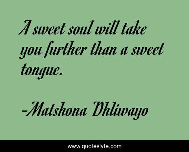 "Matshona Dhliwayo Quotes." Quoteslyfe.com, 2025. Tue. 09 Dec. 2025. <https://www.quoteslyfe.com/quote/A-sweet-soul-will-take-you-further-121127>.