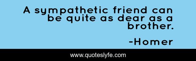 This page presents the quote "A sympathetic friend can be quite as dear as a brother.". Author of this quote is Homer. This quote is about dear, brother, friend,.