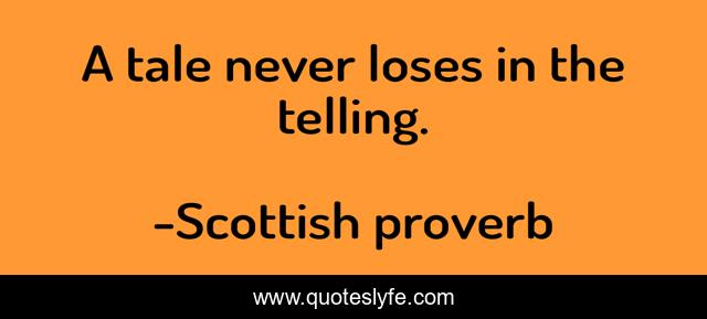 This page presents the quote "A tale never loses in the telling.". Author of this quote is Scottish proverb. .