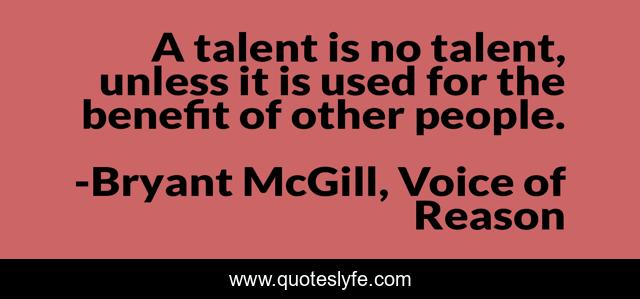 This page presents the quote "A talent is no talent, unless it is used for the benefit of other people.". Author of this quote is Bryant McGill, Voice of Reason. This quote is about social-development, talent, helping-mankind,.