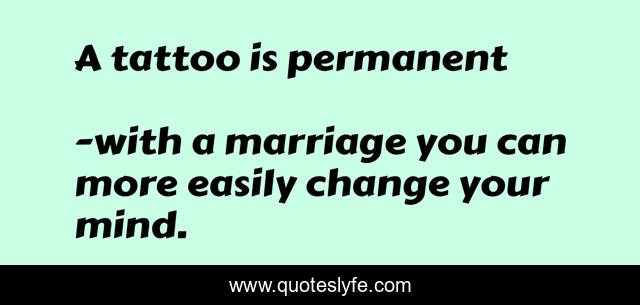 "with a marriage you can more easily change your mind. Quotes." Quoteslyfe.com, 2025. Sat. 06 Dec. 2025. <https://www.quoteslyfe.com/quote/A-tattoo-is-permanent-77497>.