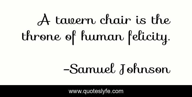 This page presents the quote "A tavern chair is the throne of human felicity.". Author of this quote is Samuel Johnson. This quote is about enjoyment, pleasure,.
