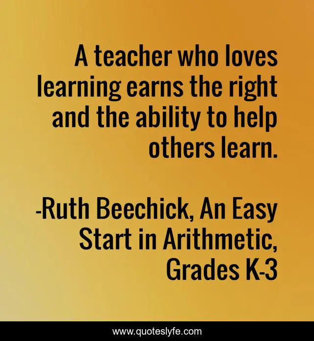 "Ruth Beechick, An Easy Start in Arithmetic, Grades K-3 Quotes." Quoteslyfe.com, 2025. Sat. 06 Dec. 2025. <https://www.quoteslyfe.com/quote/A-teacher-who-loves-learning-earns-the-33379>.
