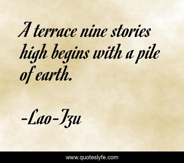 This page presents the quote "A terrace nine stories high begins with a pile of earth.". Author of this quote is Lao-Tzu. .