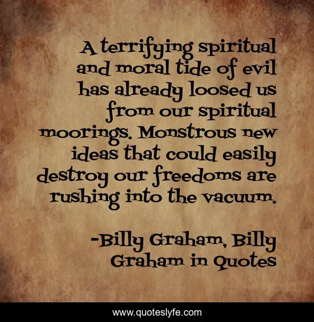 "Billy Graham, Billy Graham in Quotes Quotes." Quoteslyfe.com, 2025. Mon. 08 Dec. 2025. <https://www.quoteslyfe.com/quote/A-terrifying-spiritual-and-moral-tide-of-152702>.