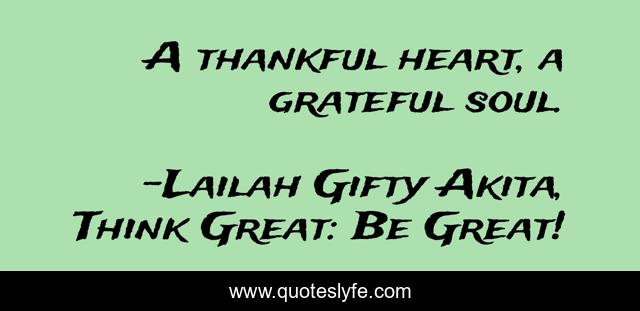 "Lailah Gifty Akita, Think Great: Be Great! Quotes." Quoteslyfe.com, 2025. Mon. 08 Dec. 2025. <https://www.quoteslyfe.com/quote/A-thankful-heart-a-grateful-soul-121398>.