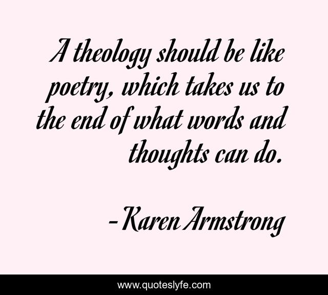 This page presents the quote "A theology should be like poetry, which takes us to the end of what words and thoughts can do.". Author of this quote is Karen Armstrong. This quote is about end, thoughts, words,.
