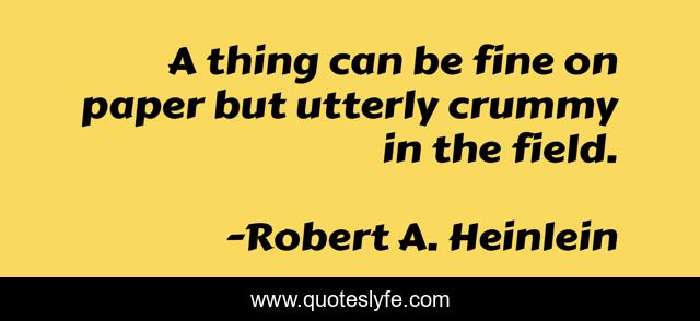 This page presents the quote "A thing can be fine on paper but utterly crummy in the field.". Author of this quote is Robert A. Heinlein. This quote is about idealism, leadership, reading,.