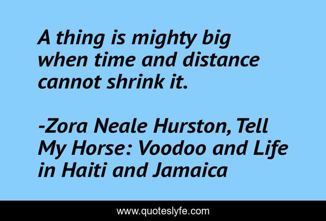 "Zora Neale Hurston, Tell My Horse: Voodoo and Life in Haiti and Jamaica Quotes." Quoteslyfe.com, 2025. Fri. 05 Dec. 2025. <https://www.quoteslyfe.com/quote/A-thing-is-mighty-big-when-time-255198>.