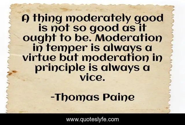 This page presents the quote "A thing moderately good is not so good as it ought to be. Moderation in temper is always a virtue but moderation in principle is always a vice.". Author of this quote is Thomas Paine. .