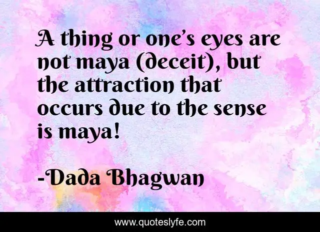 This page presents the quote "A thing or one’s eyes are not maya (deceit), but the attraction that occurs due to the sense is maya!". Author of this quote is Dada Bhagwan. This quote is about religion, spiritual,.