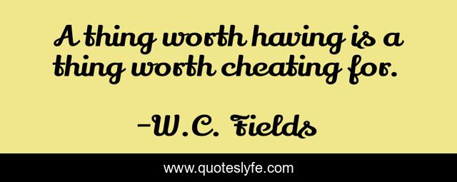 This page presents the quote "A thing worth having is a thing worth cheating for.". Author of this quote is W.C. Fields. This quote is about enthusiasm, humour, inspirational,.