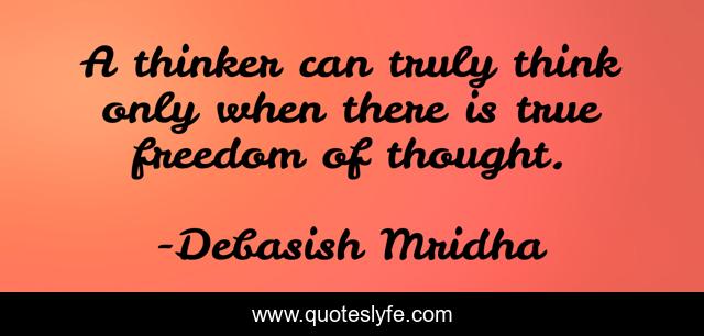 This page presents the quote "A thinker can truly think only when there is true freedom of thought.". Author of this quote is Debasish Mridha. This quote is about true-freedom-of-thought, philosophy, debasish-mridha, freedom-of-thought, quotes, thinker, inspirational, enthusiasm, debasish-mridha-m-d,.