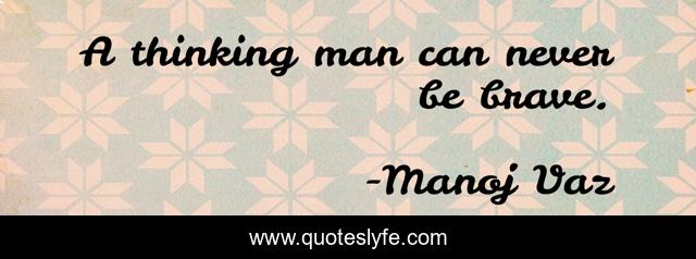 This page presents the quote "A thinking man can never be brave.". Author of this quote is Manoj Vaz. This quote is about life-philosophy, life-lessons, thinking-man,.