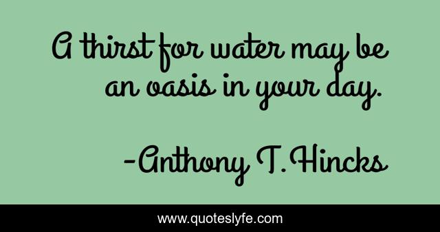 This page presents the quote "A thirst for water may be an oasis in your day.". Author of this quote is Anthony T.Hincks. This quote is about life, quench, philosophy, water, in-your-day, oasis, day,.