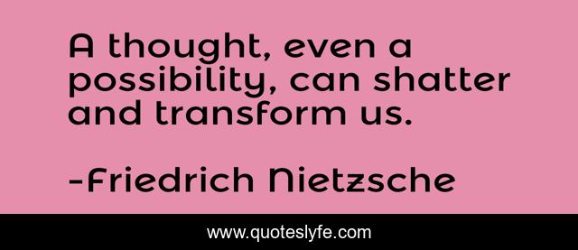 This page presents the quote "A thought, even a possibility, can shatter and transform us.". Author of this quote is Friedrich Nietzsche. This quote is about thought, profundity, possibility,.