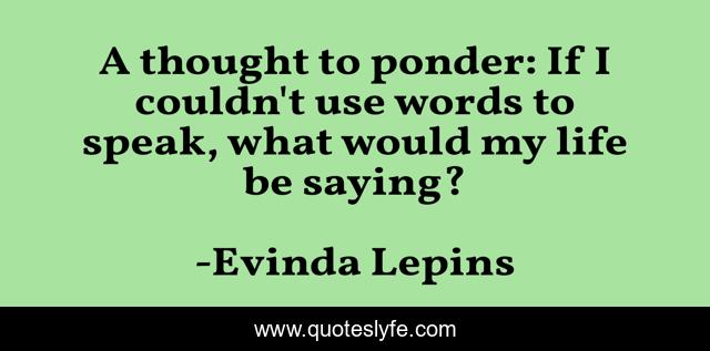 This page presents the quote "A thought to ponder: If I couldn't use words to speak, what would my life be saying?". Author of this quote is Evinda Lepins. This quote is about saying, life, ponder, thought, my-life, words, speak,.