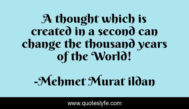 This page presents the quote "A thought which is created in a second can change the thousand years of the World!". Author of this quote is Mehmet Murat ildan. This quote is about thought, world, create, change,.